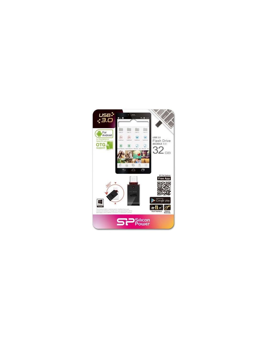 - USB 3.0 - obrotowy 360° - nie ma ryzyka zgubienia zatyczki  - wykorzystuje technologię COB (Chip on Board) - obsługiwane systemy OS: Windows 8 / 7 / Vista / XP / 2000, Mac OS 10.3.x, Linux 2.6.x oraz dla urządzeń moblilnych: Android 4.1.X* / windows phone*(*dla urządzeń mobilnych, które obsługują funkcję OTG On-The-Go) - dożywotnia gwarancja
